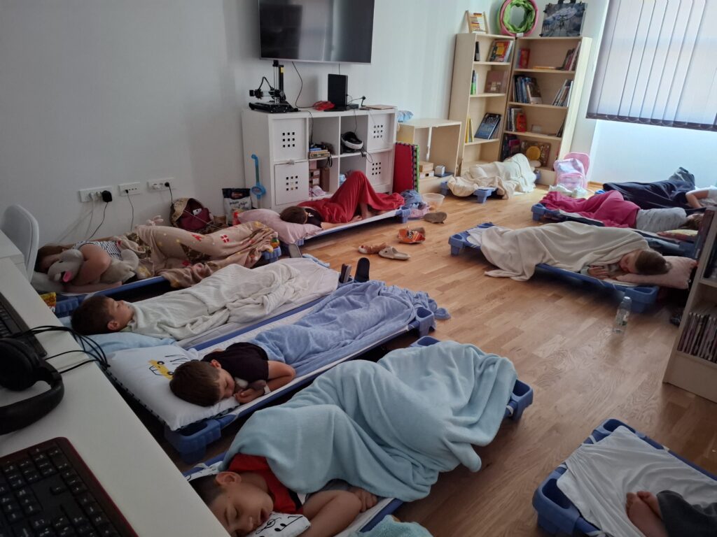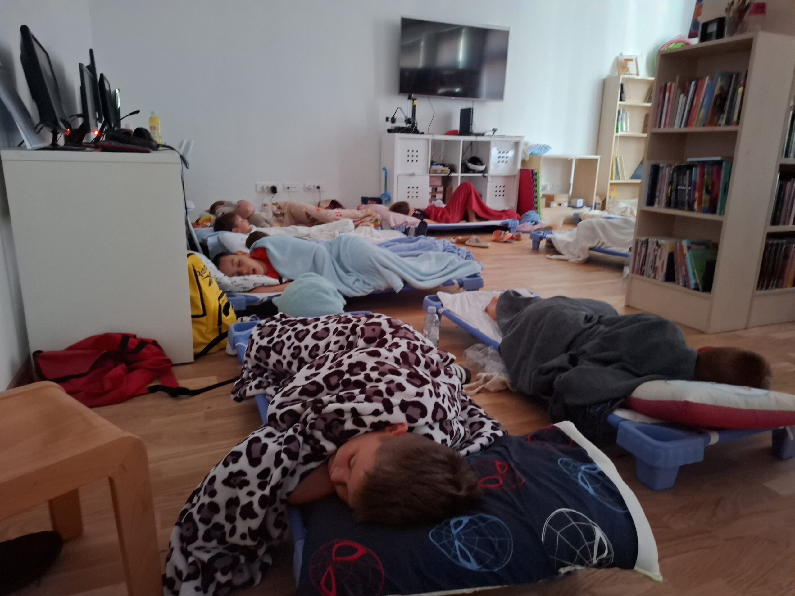 Čak 14 hrabrih osnovnoškolaca provelo je noć među policama i knjigama – igrali su društvene igre, gledali filmove, uživali u grickalicama i sokićima u „krevetima“, a nakon kasnog odlaska na spavanje, jutro su započeli zajedničkim doručkom i igrama.