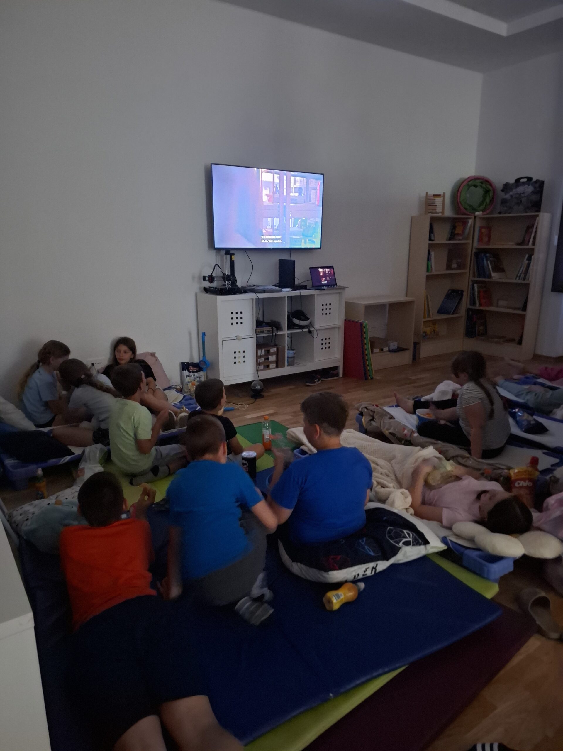 Čak 14 hrabrih osnovnoškolaca provelo je noć među policama i knjigama – igrali su društvene igre, gledali filmove, uživali u grickalicama i sokićima u „krevetima“, a nakon kasnog odlaska na spavanje, jutro su započeli zajedničkim doručkom i igrama.