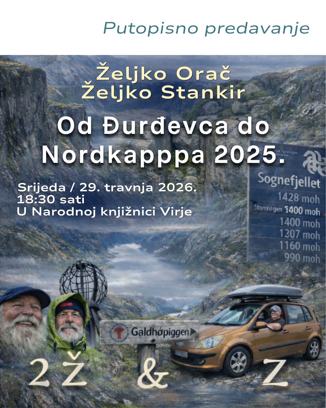 Na putopisnom predavanju svoje će iskustvo podijeliti Željko Orač i Željko Stankir, dvojica entuzijasta koji su se na ovu avanturu otisnuli sami, oslanjajući se na snalažljivost, spontanost i smještaj koji su pronalazili putem.